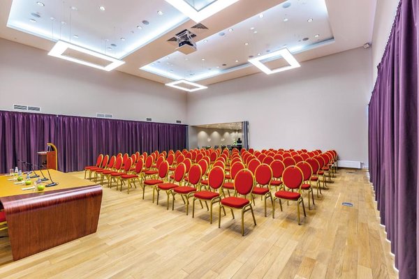 Для проведения семинаров, деловых встреч, свадебных торжеств и частных мероприятий отель предлагает специально оборудованный конференц-зал.