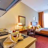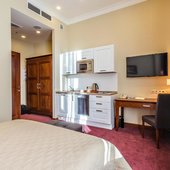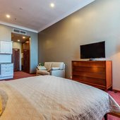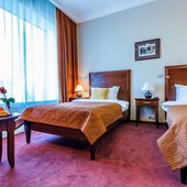 В уютных номерах, оформленных в классическом стиле с теплыми тонами, вас ждет атмосфера домашнего уюта. Каждая категория предлагает все необходимое для комфортного проживания, включая ванные комнаты и бесплатный Wi-Fi.