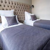 Для размещения подготовлены уютные номера различной категории, который выполнены в классическом стиле, интерьер подобран в цветовой гамме комнат. В ванной установлен стандартный набор сантехники.