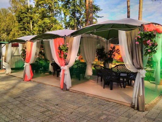 Беседка очень уютная, идеально подходит для проведения торжества в весеннее и летнее время.