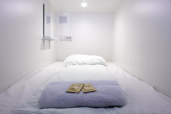 В номерном фонде отеля не только одноместные и двухместные капсулы, расположенные в общих комнатах, но отдельные номера со стандартными кроватями. В капсулах есть индивидуальное освещение, розетка, зеркало. Также гостям предлагается воспользоваться ящиками для хранения вещей. Все желающие могут отдохнуть в общей гостиной с диваном и телевизором.