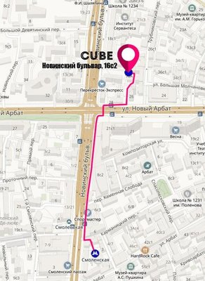 «Cube» находится в центре столицы, поэтому рядом - множество достопримечательностей и развлечений. Например, дом-музей Шаляпина, кинотеатр «Октябрь» и Пресненский парк.