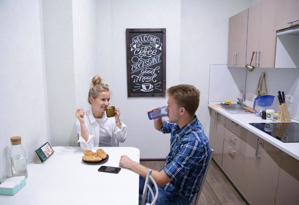 Готовить и разогревать еду предлагается на кухня, которая оборудована современной бытовой техникой и обеденным столом. У постояльцев не возникнет трудностей с поиском продуктовых магазинов и кафе поблизости с отелем.