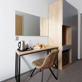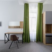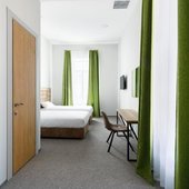 Номерной фонд представлен просторными, светлыми номерами с современным дизайном и элементами арт-хауса, здесь оборудованы спальные места и ванная комната с душевой кабиной. Каждый номер оснащен телевизором с плоским экраном, DVD и сплит-системой.