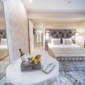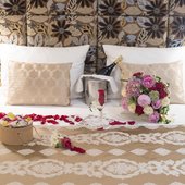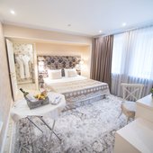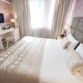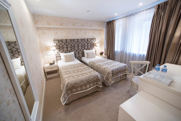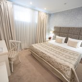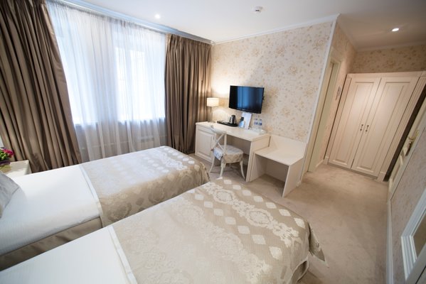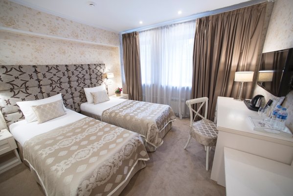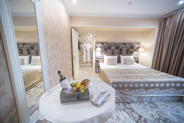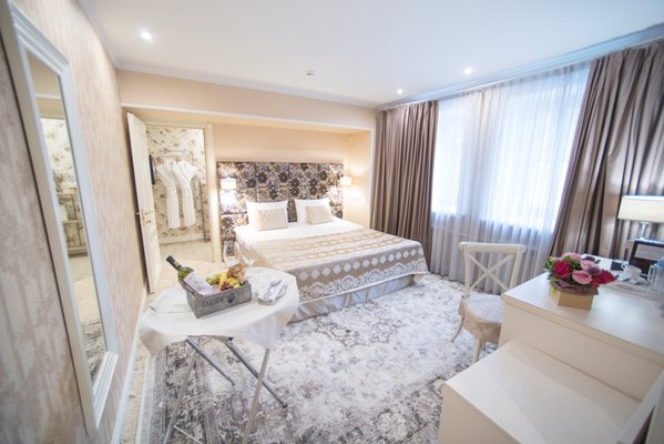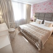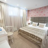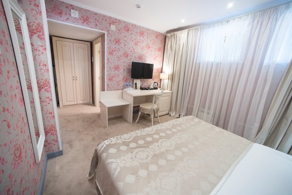Все номера оформлены в стиле прованс, в светлых тонах с цветочным орнаментом. Оснащены номера кондиционером, телевизором, электрическим чайником, мини-баром, и собственной ванной комнатой.