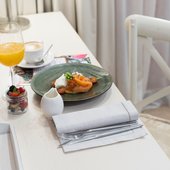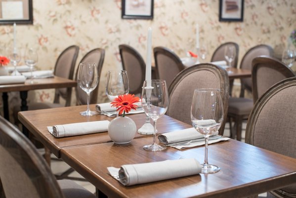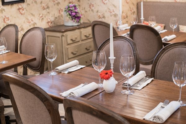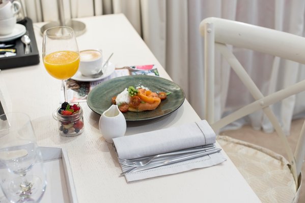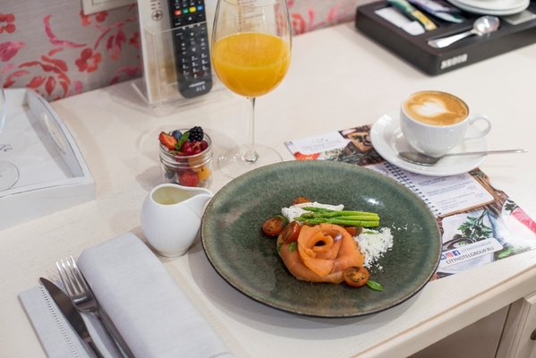 В бутик-отеле «Де Пари» есть ресторан, где подаются блюда различной кухни из дичи. По утрам накрывается завтрак по типу «шведский стол». Каждый день в 17:00 гости могут бесплатно взять чай.