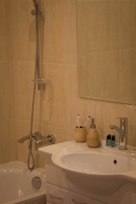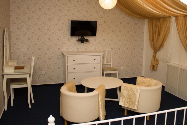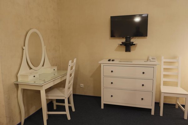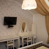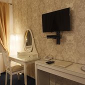 Номерной фонд выполнен в светлых молочных тонах. Гости пользуются собственными ванными комнатами с душем и туалетом. Из техники имеется кондиционер и телевизор.