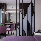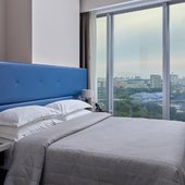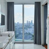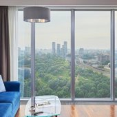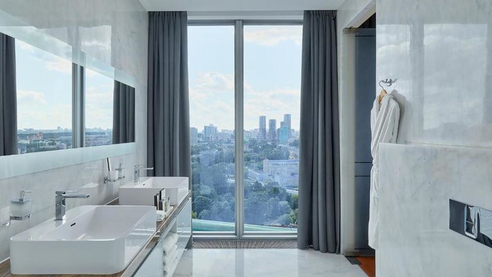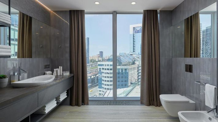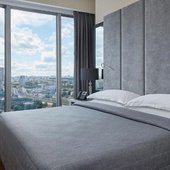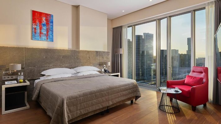 Красивый вид из окна на городскую панораму. В номере есть большой качественный телевизор. Современное оформление интерьера. Наличие стационарной телефонной связи. Высокое качество уборки в номере, которая проводится каждый день.