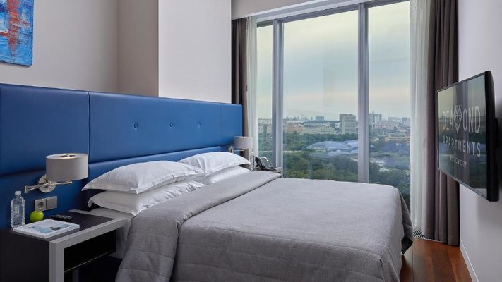 Столичный пятизвёздочный апарт-отель «Diamond» находится рядом со станцией метро "Международная", в шаговой доступности от комплекса "Москва-Сити". Имеется сейф с кодом для хранения личных вещей. Предусмотрено наличие частной парковочной автостоянки по предварительному заказу. Wi-Fi предоставляется в номерах бесплатно.