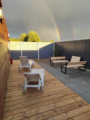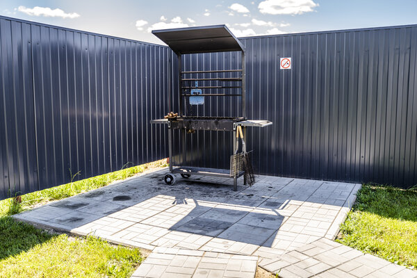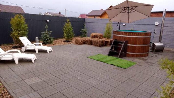 Вокруг купели просторная территория с удобными лежаками, где можно отдохнуть после процедуры. Рядом расположена мангальная зона, что делает это место идеальным для дружеских встреч и семейных праздников, наполняя каждый момент атмосферой уюта и гармонии с природой.