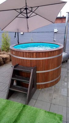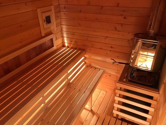 Горячая купель на дровах расположена под открытым небом и способна вместить до шести человек. Подсветка и гидромассаж создают особенную атмосферу, позволяя насладиться водными процедурами в любое время года. Купель становится идеальным местом для расслабления и восстановления сил, способствуя улучшению кровообращения и снятию напряжения в мышцах.