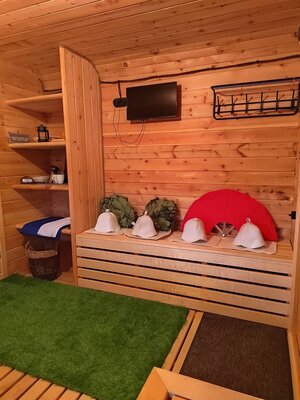 Каждая баня оборудована собственной парной, душем и санузлом, а также уютной комнатой отдыха с телевизором и столом. Огороженная территория позволяет с комфортом находиться как в самой бане, так и на улице — под открытым небом расположены мангал, зона отдыха и холодная купель, что создает дополнительные возможности для развлечений и активного отдыха.