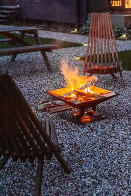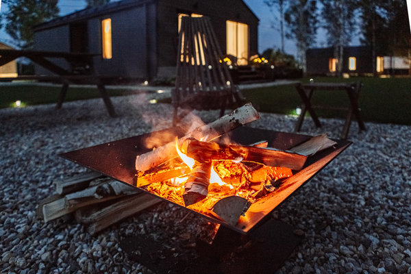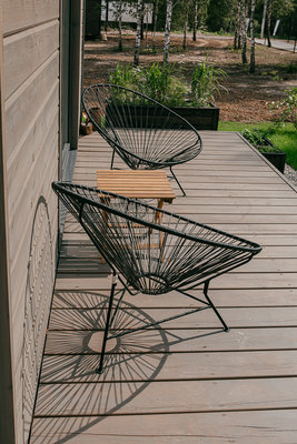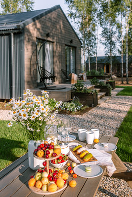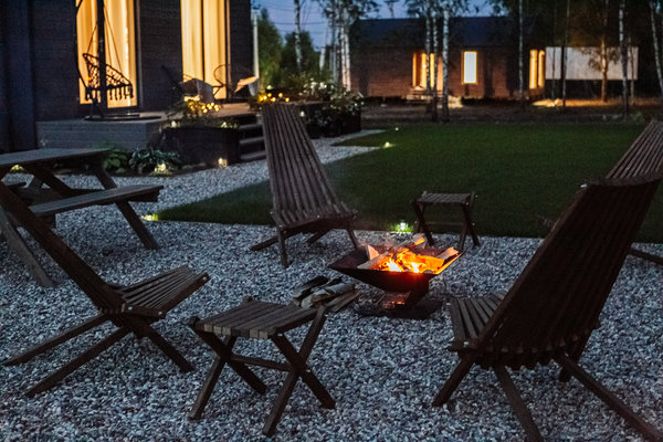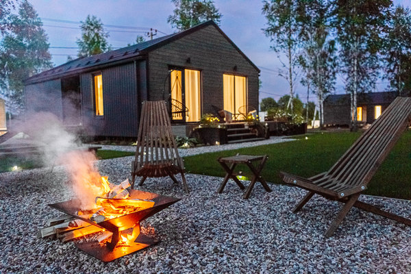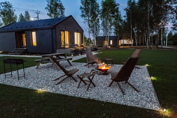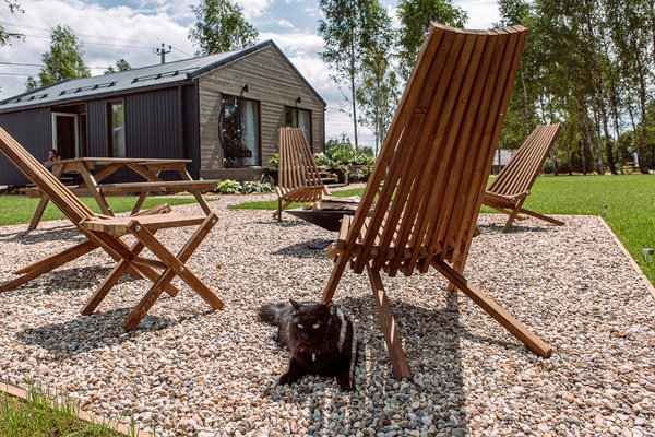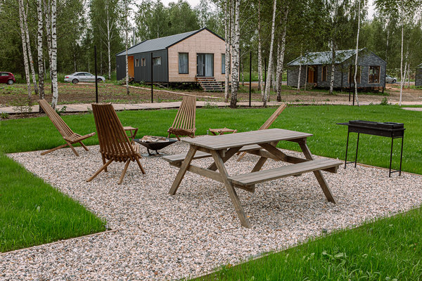 На территории дома есть зона барбекю с мангалом и столом, костровая зона с костровой чашей, терраса с зоной отдыха и парковка на три машины. Доступны различные развлечения, такие как бадминтон, настольные игры и пазл. Гости также смогут насладиться ретро-атмосферой благодаря виниловому проигрывателю и подборке пластинок.
