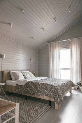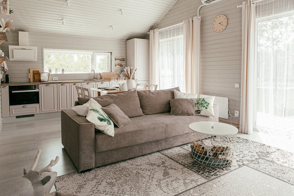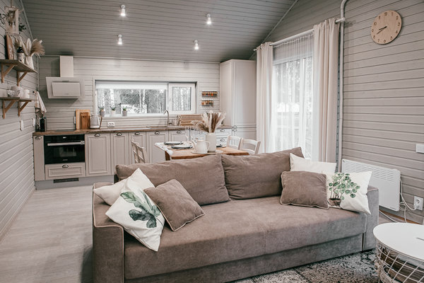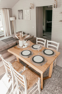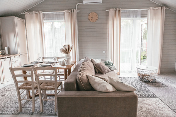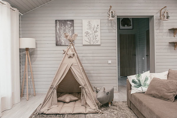 В доме имеется белоснежное постельное белье, пушистые полотенца, одноразовые тапочки, зубные наборы, фен, средства гигиены, а также кофе-машина, комплекты посуды, соль, перец, сахар и крупы. Также предоставляется детская кроватка.