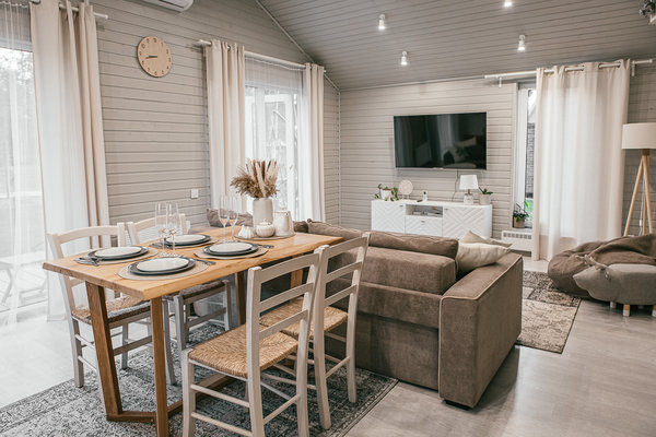«Дом на Истринском водохранилище» представляет собой уютный панорамный дом, расположенный в коттеджном поселке Грин Лаундж в Московской области. Здесь гости найдут все необходимое для комфортного отдыха, включая современную технику, оснащение и удобную мебель.