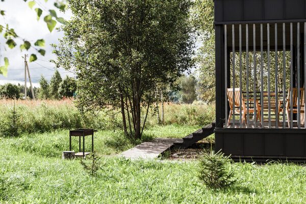 На просторной веранде с мангалом можно устраивать вечера барбекю, а открытая территория позволит почувствовать себя частью природы. Рядом с домом — лес и пруд, где можно гулять и купаться.
