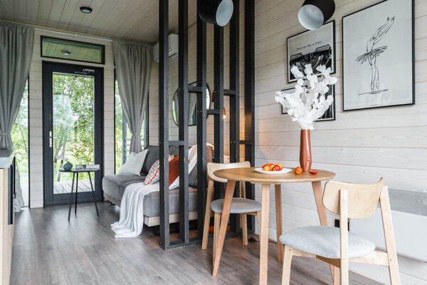 В доме есть все необходимое для комфортного проживания: уютная спальня, просторная гостиная с диваном, современная кухня и климат-контроль. Бесплатный Wi-Fi, мягкие полотенца и качественная косметика сделают ваш отдых еще приятнее.