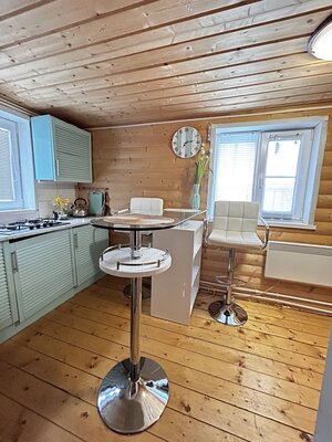 После активных прогулок на свежем воздухе побалуйте себя целительной баней, расположенной прямо в вашем домике. К вашим услугам банные процедуры на березовых дровах с парной. Не волнуйтесь о постельном белье и полотенцах, мы обеспечим их для вашего удобства.
