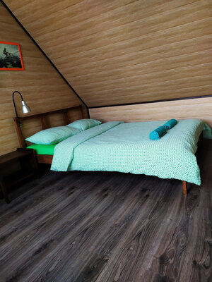 В живописной деревне Евлево, в Подмосковье, вас ждет гостевой дом «Дом в краю озёр». На втором этаже расположены три уютные спальни, в каждой из которых есть вентилятор и москитные сетки для комфортного отдыха.