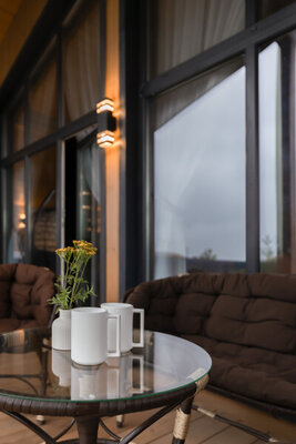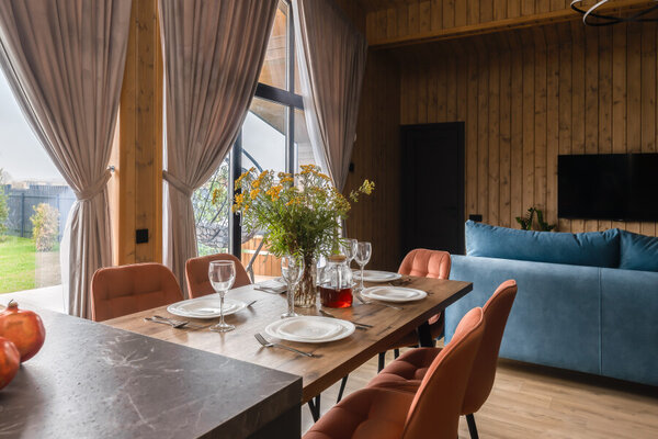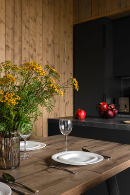 Он сочетает в себе комфорт и живописную природу, предлагая панорамные виды из окон и расслабляющую сауну. Насладитесь завтраком на террасе, понаблюдайте за звездами у костра и отдохните от городской суеты в тишине деревни.