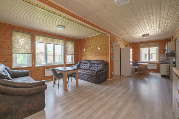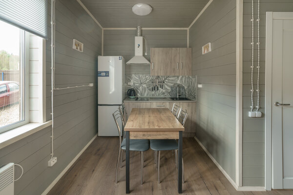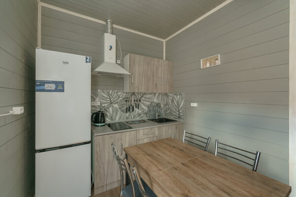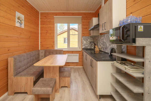 Коттеджи оснащены всем необходимым для комфортного проживания. К каждому дому примыкает мангальная зона, где можно приготовить вкусные блюда на природе. На территории комплекса к вашим услугам открытый бассейн и баня.