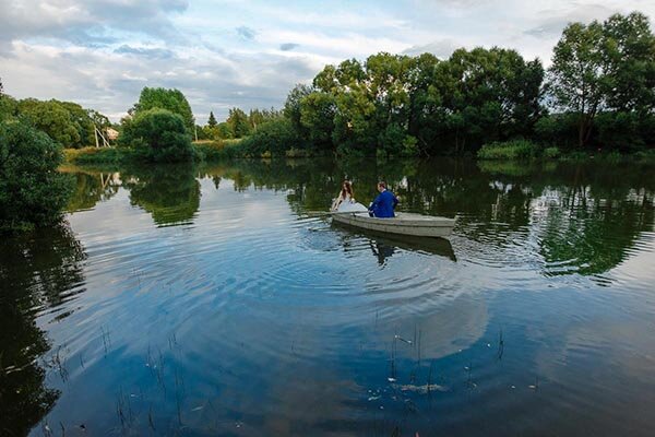 Белоснежная лодочка для фотосессий или романтических прогулок по живописному озеру подарит множество приятных впечатлений.
