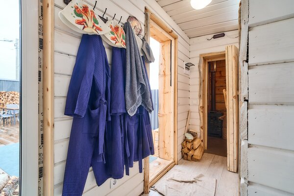 После насыщенного дня побалуйте себя в дровяной бане. Все аксессуары для процедуры предусмотрены: полотенца, шапочки и халаты. Зона отдыха в бане обеспечит вам полноценный релакс.