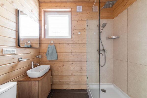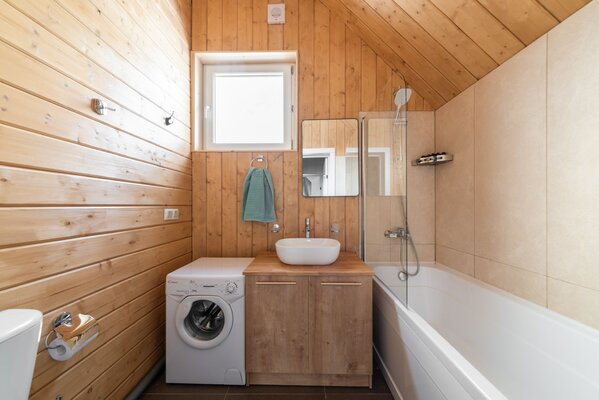 Ваши удобства продуманы до мелочей: два санузла с душем и изысканной ванной, ортопедические матрасы, свежее постельное белье, банные принадлежности, полотенца и халаты.