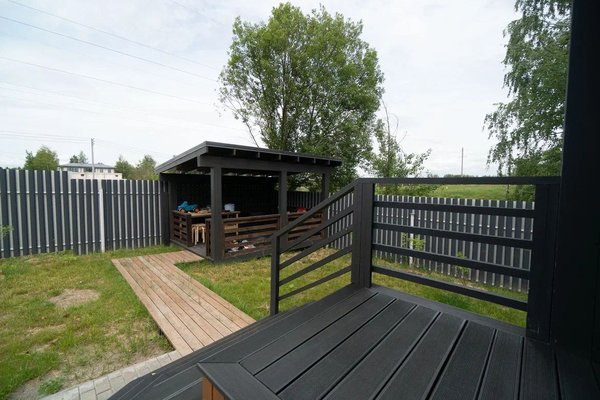 Неотъемлемой частью загородного отдыха станет еда, приготовленная на мангале. Для это есть оборудованная мангальная зона и обеденный стол со скамьями.