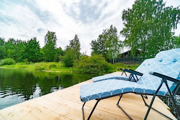 Всего в нескольких метрах от дома есть озеро с шезлонгами и мостиками на берегу, где вы можете искупаться в жаркий денёк.