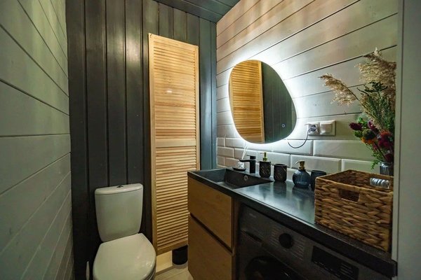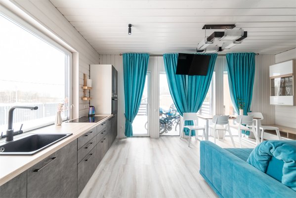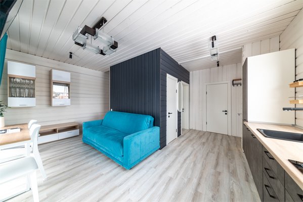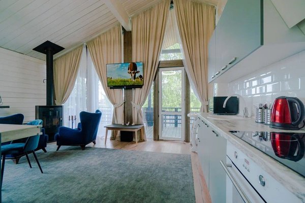 Коттедж состоит из двух спален, собственной ванной комнаты, сауны, полностью оборудованной кухни-гостиной, телевизора, кондиционера, камина, системы «Умный дом» и крытой террасы, где вы можете расслабиться и насладиться окружающей природой.