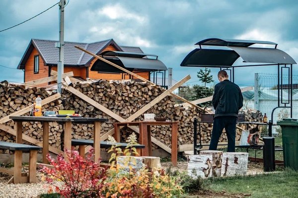 Провожайте закаты, жарив шашлык на открытом воздухе и наслаждайтесь пением птиц, сидя у кострища в удобных креслах, попивая любимый напиток.