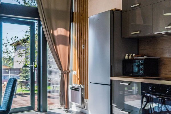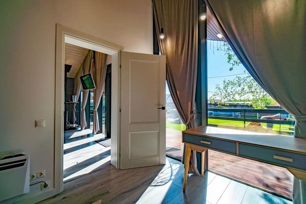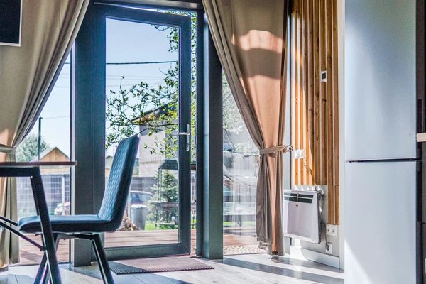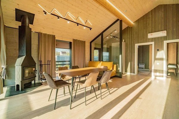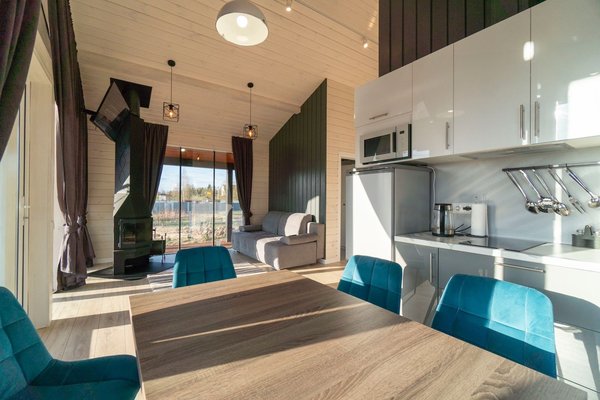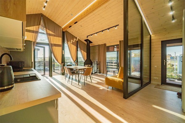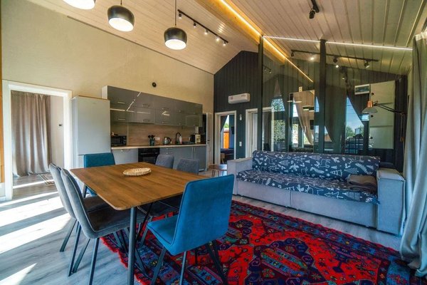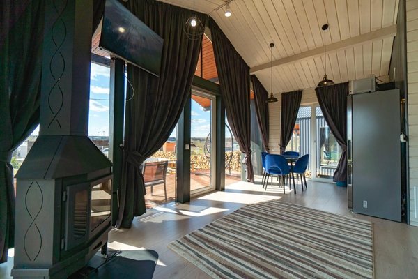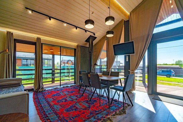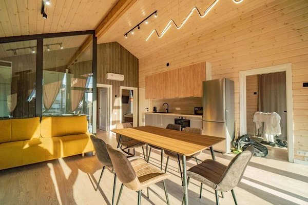 К вашим услугам уютные домики, оснащенные всем необходимым для комфортного отдыха: просторной террасой, полностью оборудованной кухней, мягкой мебелью, современной бытовой техникой и всеми удобствами. Некоторые дома порадуют наличием собственной сауны.