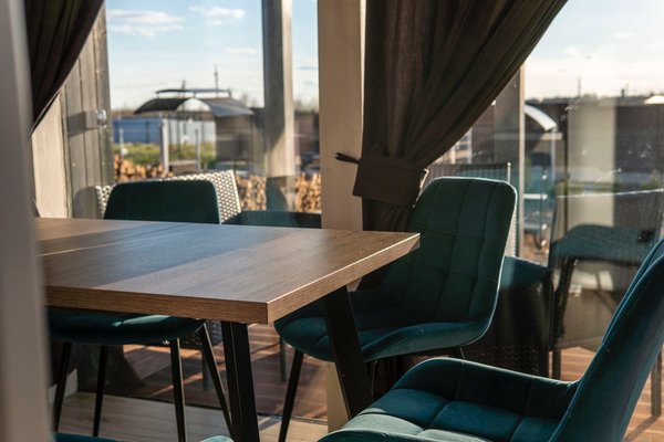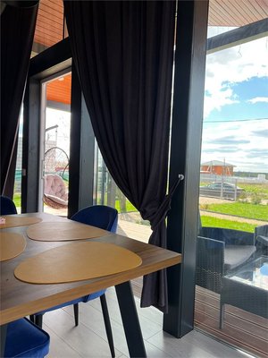 Внутри бани создана атмосфера спокойствия и комфорта. Стены украшены натуральным деревом, придающим интерьеру природную красоту. Открытые окна позволяют наслаждаться прекрасными видами природы и естественным освещением.