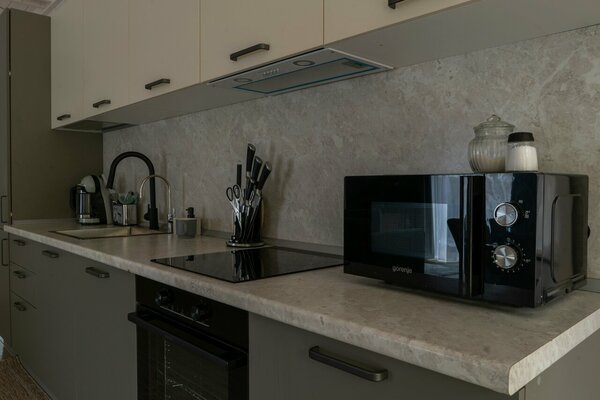 Комната отдыха с мини-кухней предлагает насладиться чаем и сладостями в комфортной обстановке, используя посуду и чайник. Этот уголок спокойствия и умиротворения идеально подходит для восстановления душевного равновесия.