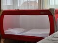 В дуплексе «Дом в Дракино» по предварительному запросу устанавливают кроватку‑манеж, предназначенную для детей до трёх лет. Для самых маленьких возможна регулировка высоты дна; в комплект входят приятное постельное белье, небольшая подушечка, дополнительный матрас и влагозащитная простыня.