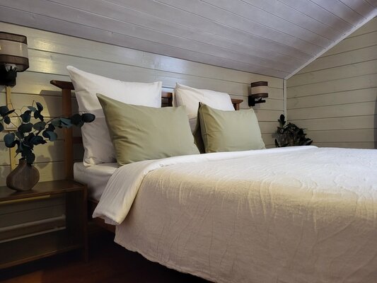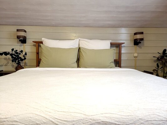 В дуплексе «Дом в Дракино» вас ожидает белоснежное постельное белье, изготовленное из 100% хлопка высокого качества.