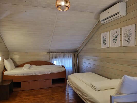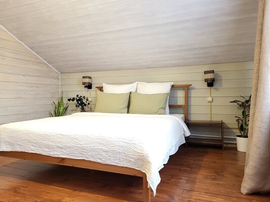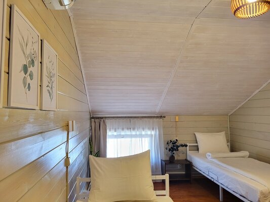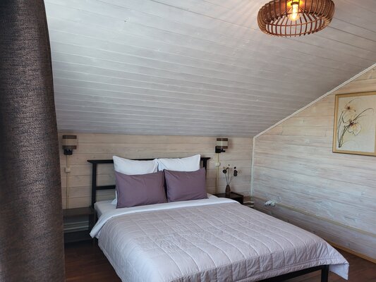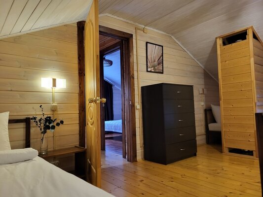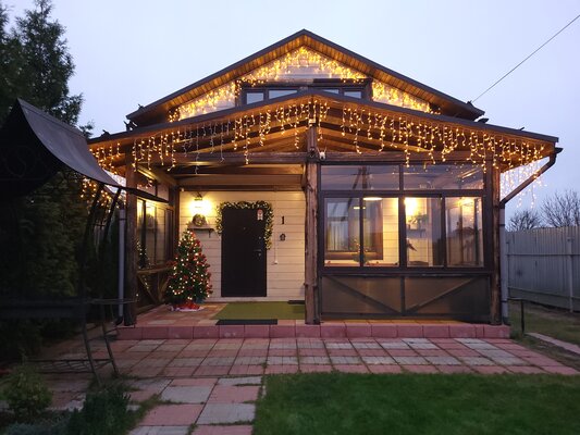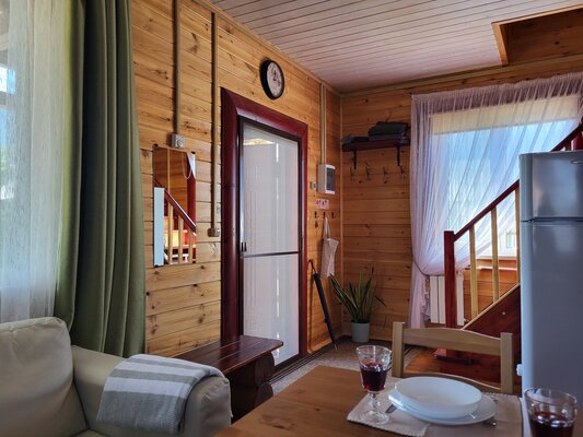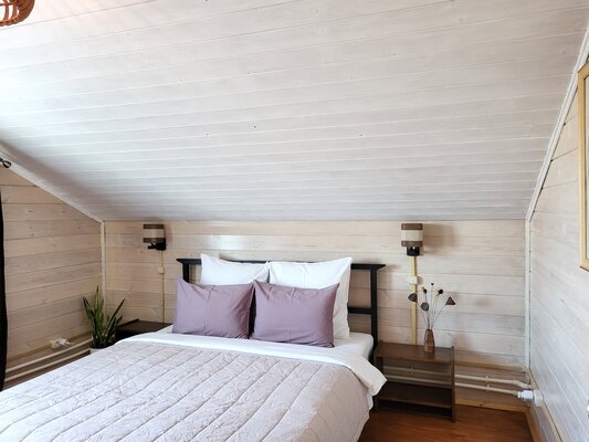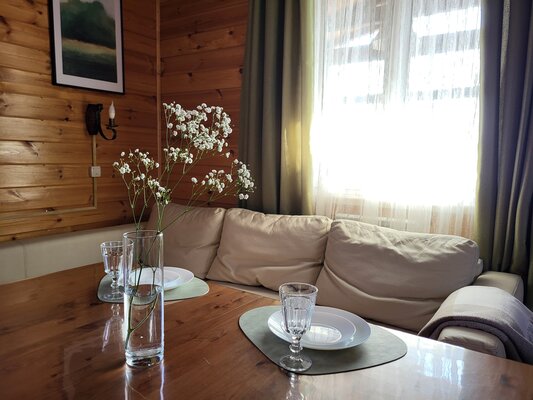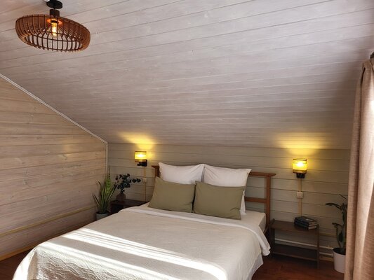 Внутри вас ждет все необходимое для беззаботного отдыха: камин, принадлежности для гриля, Smart TV, велосипеды, детские удобства, а также полный комплект постельного белья, туалетных принадлежностей и напитков (кофе, чай). Продуманный интерьер и безупречная чистота создают атмосферу уюта и спокойствия.