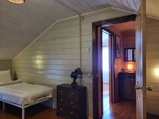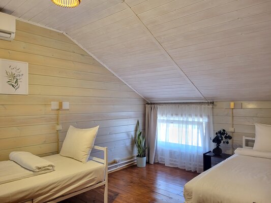 Двухэтажный дуплекс «Дом в Дракино» расположен на просторном, ухоженном участке в 8 соток и идеально подходит для комфортного отдыха двух семей или большой компании. Дом, построенный из экологически чистых материалов, предлагает полную приватность: каждая половина имеет свой отдельный вход, парковку, баню и зону барбекю.