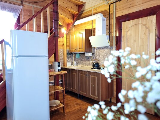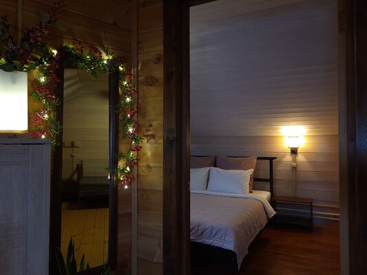 Если же потребуется пополнить запас топлива, достаточно заранее сообщить об этом администрации — дополнительный комплект дров аккуратно разместят на террасе, чтобы все было под рукой и не доставляло неудобств. Стоимость — 800 ₽.