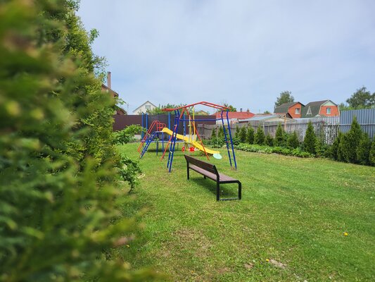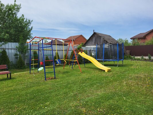Детская игровая зона находится в глубине территории, за Коттеджем №2. Она доступна для посещения гостями из обоих коттеджей.