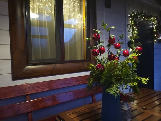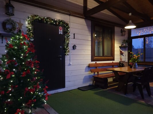 На террасах домов установлены огнетушители. Просьба строго соблюдать правила пожарной безопасности — не допускайте перегрева помещения бани выше 90 градусов и не используйте свечи внутри дома.