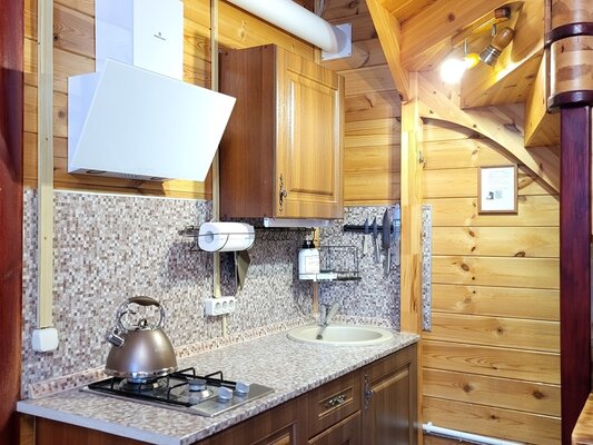 В каждом доме установлена газовая варочная панель с двумя конфорками и функцией электроподжига.
