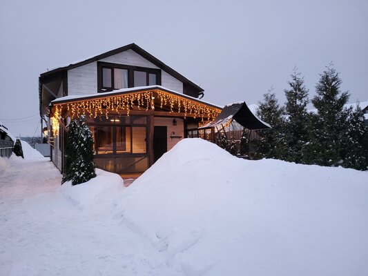 Недалеко от дома есть склон, который зимой превращается в горку для катания на санках и ватрушках. Для каждого дома предусмотрена одна ватрушка.