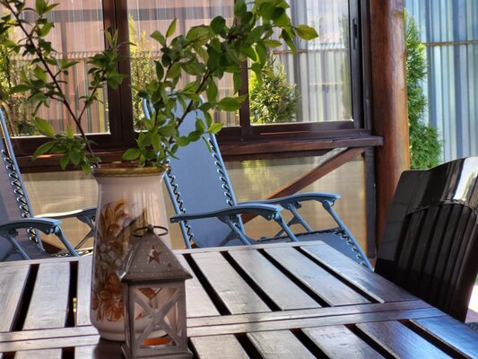 Каждая терраса оборудована деревянной мебелью и шезлонгами. В ясную погоду здесь можно наслаждаться кофе и ужином в кругу семьи.