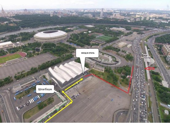 Самолетом до аэропорта Домодедово, далее на аэроэкспрессе до станции «Верхние Котлы», далее на метро 14 Московское центральное кольцо до станции «Лужники», далее пройти пешком 770 м до отеля.