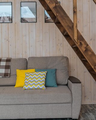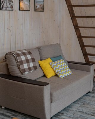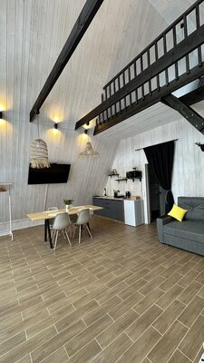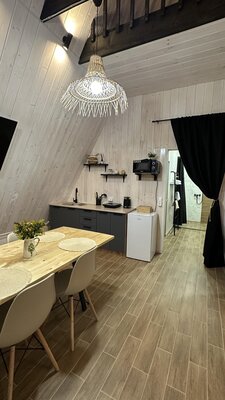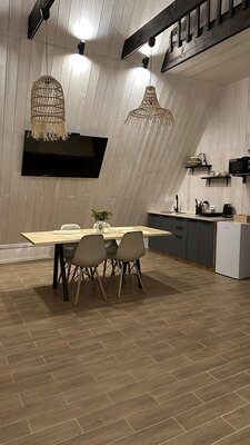 За порогом дома гостей встречает уютная и функциональная кухня со всем необходимым для приготовления домашних блюд. Просторная зона отдыха зовет насладиться просмотром любимых фильмов или почитать книгу, отвлекаясь от повседневных забот.