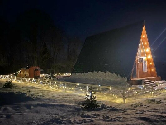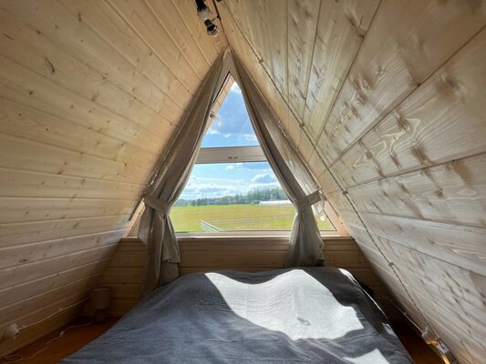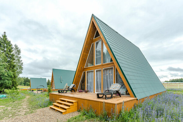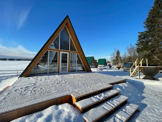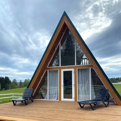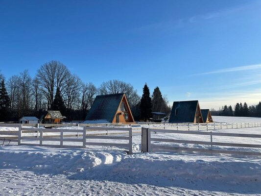 Отдохните от городской суеты в глэмпинге «ЭкоФерма Федчино»! Пять комфортабельных A-frame домов, вместимостью до 8 человек, расположены на 2 гектарах живописной территории среди полей и леса, неподалеку от реки Озерны и в 15 минутах езды от Озернинского водохранилища.