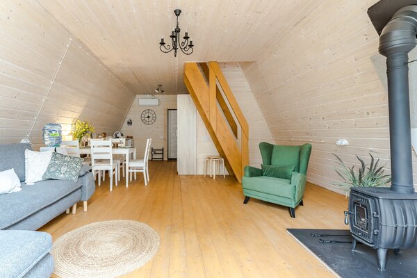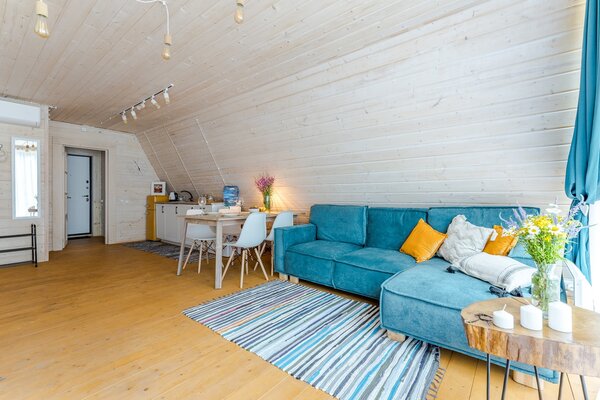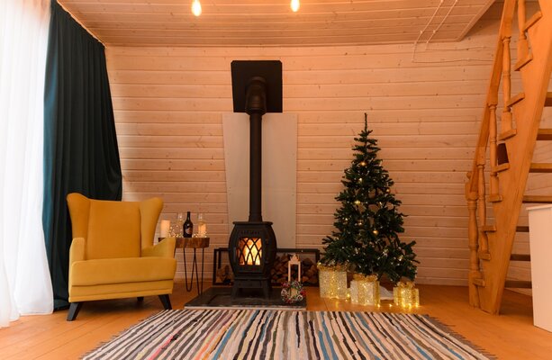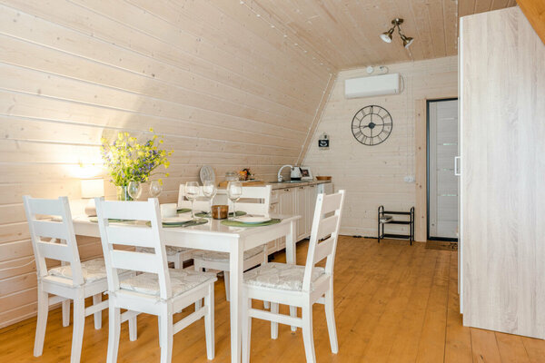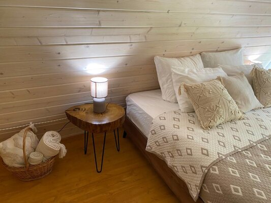 Каждый дом оборудован собственной костровой зоной, террасой с лежаками, беседкой и чаном для парения. Дома категории Large (до 8 человек) дополнительно располагают собственной русской баней. Панорамные окна открывают захватывающий вид на природу. Все дома полностью меблированы и оснащены всем необходимым.