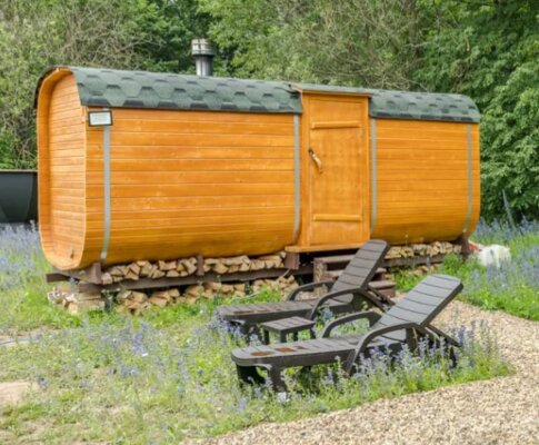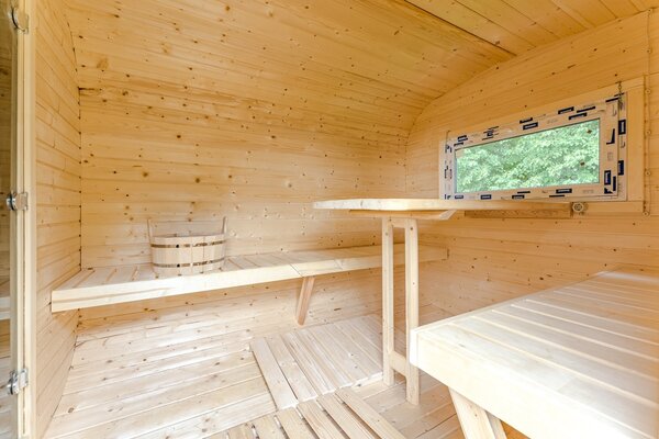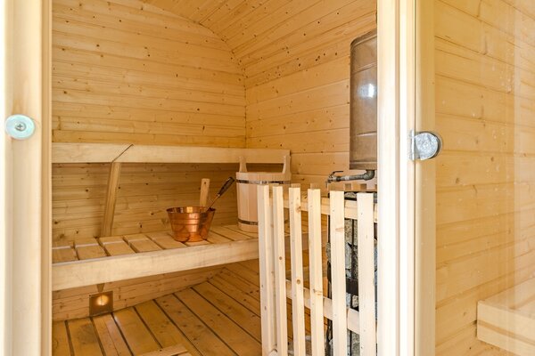 На территории А-фреймов типа Large есть баня, в которой можно расслабиться и «выпарить» весть стресс и суету городской жизни.